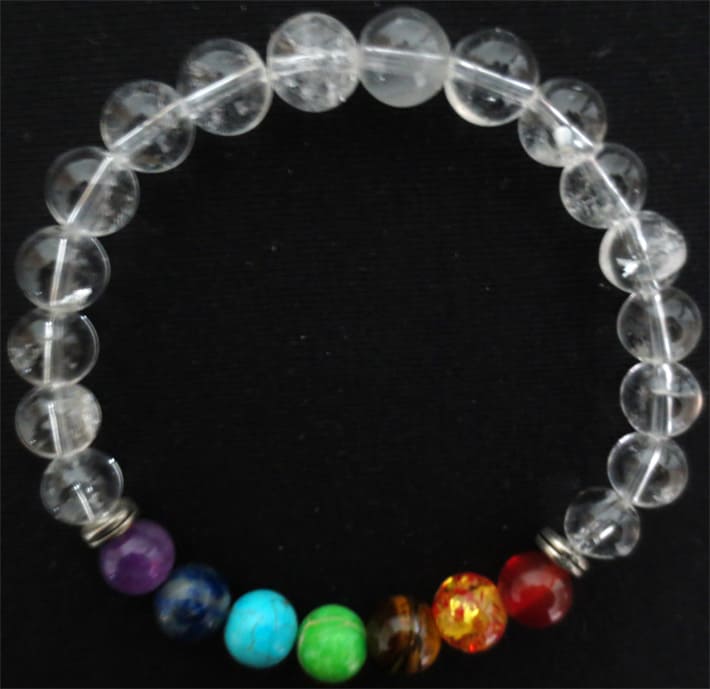 Bracelet Cristal de roche & 7 chakras perles 8mm