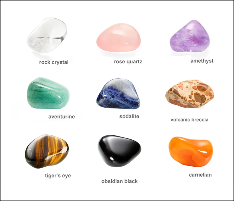 Crital de Roche - Rose Quartz - Améthyste - Aventurine Verte - Sodalite - Œil de Tigre - Obsidienne Noire- Cornaline - Jaspe Breschia Volcanique