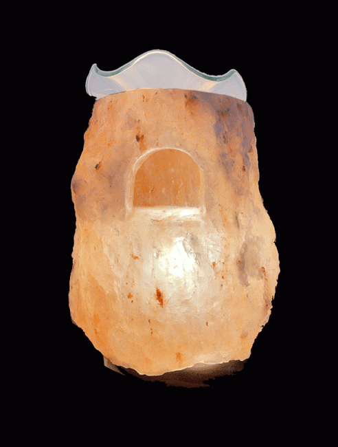 Lampe brûle parfum. C'est l'ampoule qui chauffe la coupelle en verre. Nul besoin de bougie. La coupelle en verre est fournie. Trois plots en plastique font office de socle.