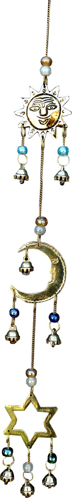 Mobile en bronze lune étoile et soleil perles & cloches 53cm
