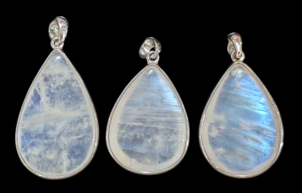 Pendentif Argent 925 Pierre de Lune Blanche AAA 3 Pièces 10,23g