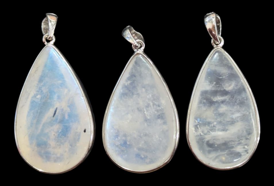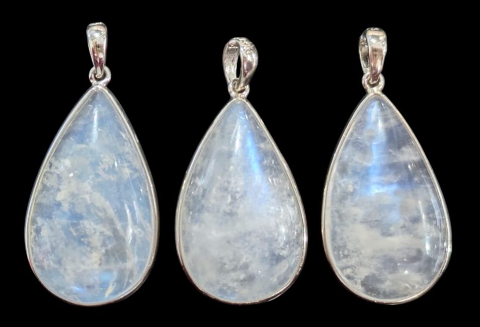Pendentif Argent 925 Pierre de Lune Blanche AAA 3 Pièces 10,6g