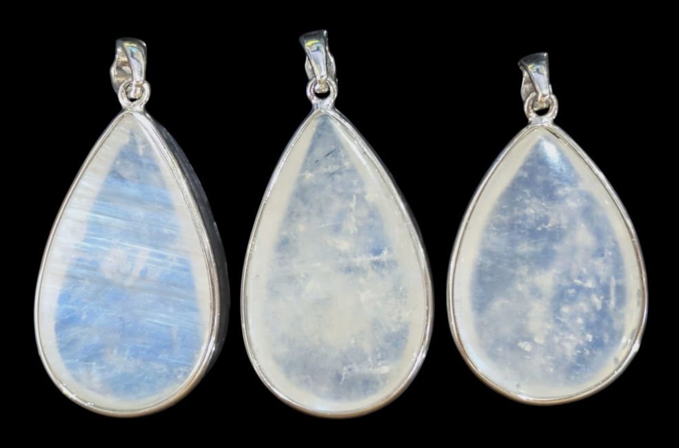 Pendentif Argent 925 Pierre de Lune Blanche AAA 3 Pièces 10,82g