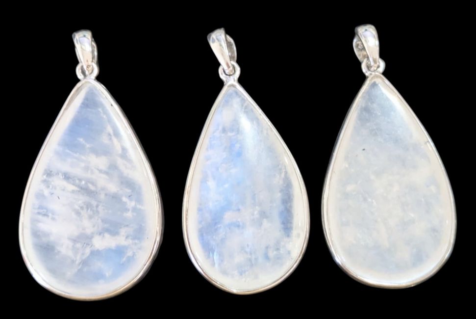 Pendentif Argent 925 Pierre de Lune Blanche AAA 3 Pièces 11.07g