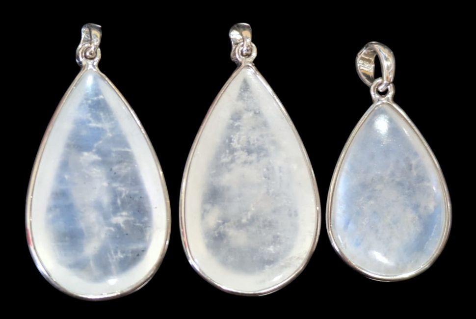 Pendentif Argent 925 Pierre de Lune Blanche AAA 3 Pièces 11,58g