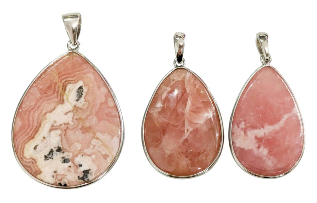 Pendentif Argent 925 Rhodochrosite Argentine AA+ 3 pièces 13,56g