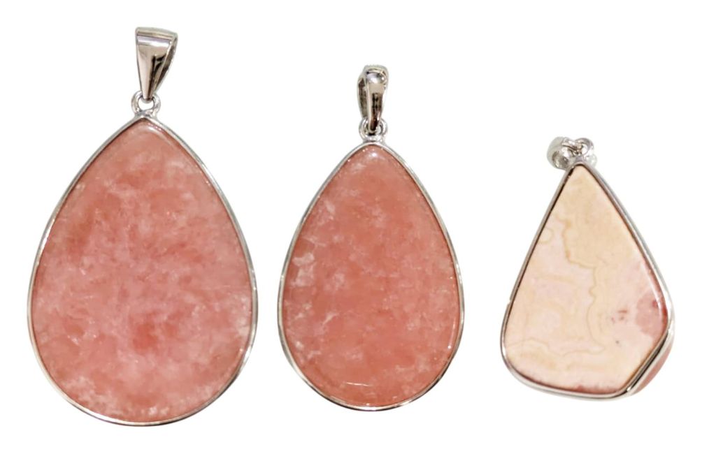 Pendentif Argent 925 Rhodochrosite Argentine AA+ 3 pièces 14,7g