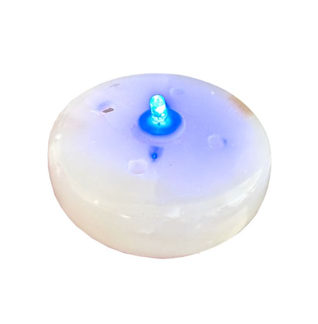 Socle en Onyx de couleur claire qui change de couleur grâce à une LED. Il est idéal pour les lampes en cristal de sel blanches ou les lampes en sélénites. Il se branche sur une prise USB.pour Lampes de Sel et Sélénite