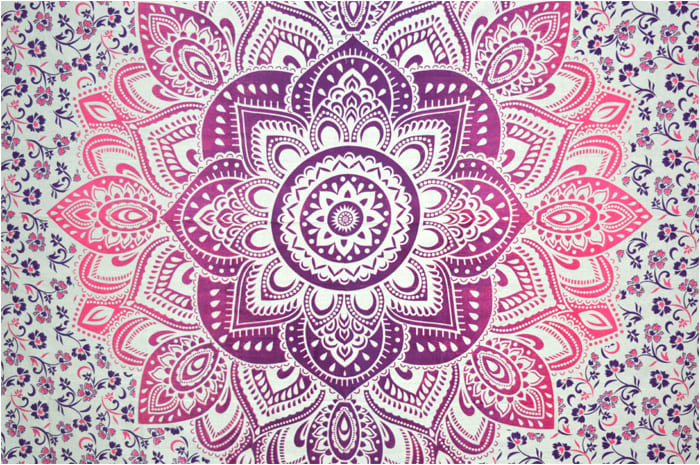 Tenture lotus blanc mauve violet et fushia