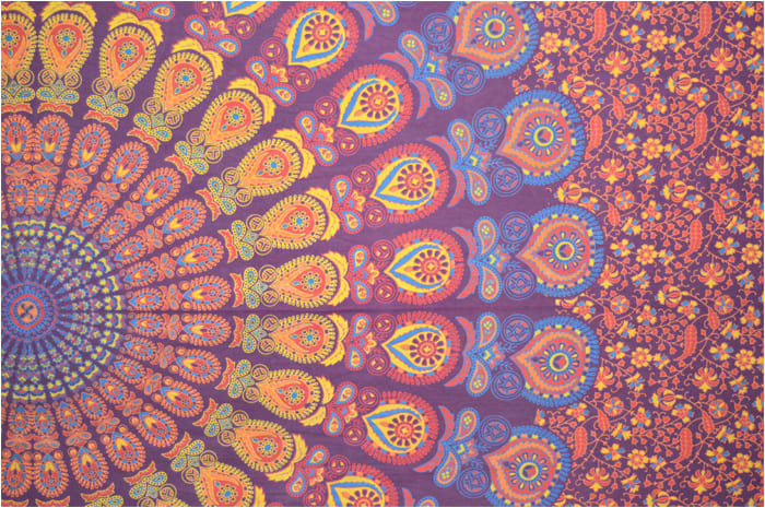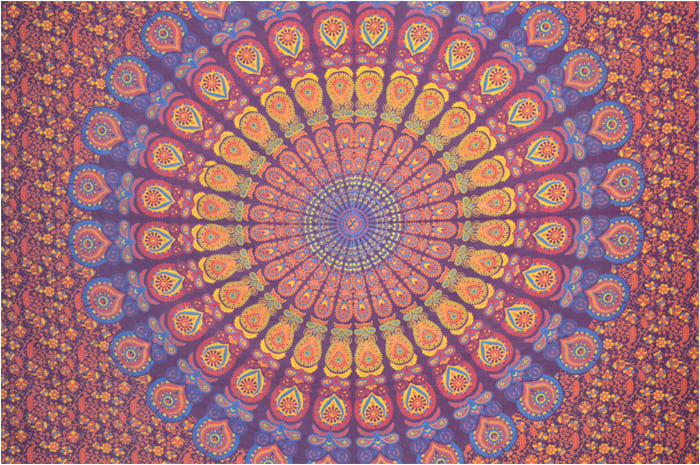 Tenture mandala bordeaux bleu clair orange & jaune